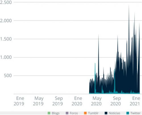 Por outro lado, os poucos tópicos de conversa ligados à marca multilatina são positivos. No acúmulo de 216.000 menções, as áreas de conversa identificadas são: oportunidades de crescimento de mercado, responsabilidade social corporativa durante a pandemia, impacto da COVID-19 no desenvolvimento e crescimento socioeconômico da América Latina, tendências globais pós-pandêmicas em vários setores e oportunidades de investimento.